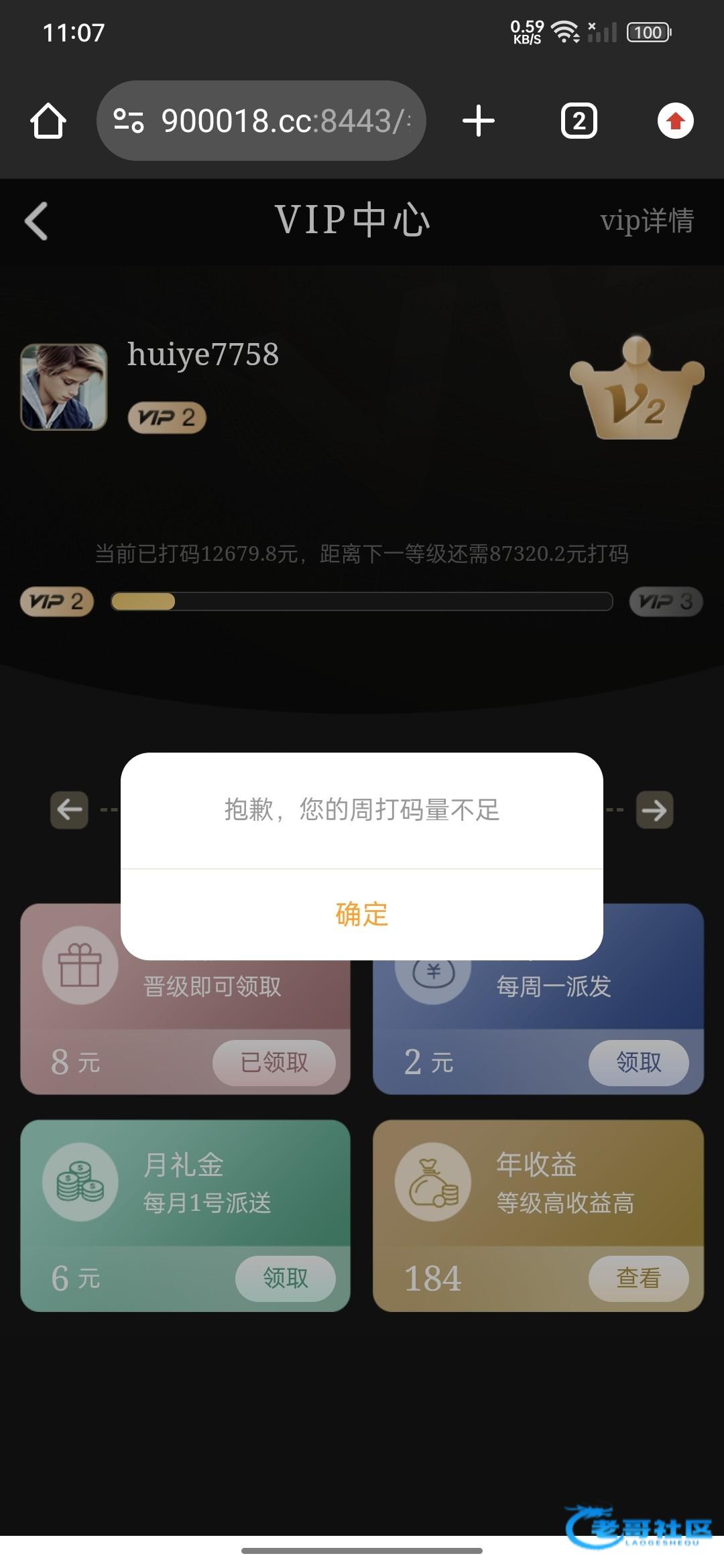 到账了 有号的老哥们去看下 现在vip周月礼金不用流水也能领