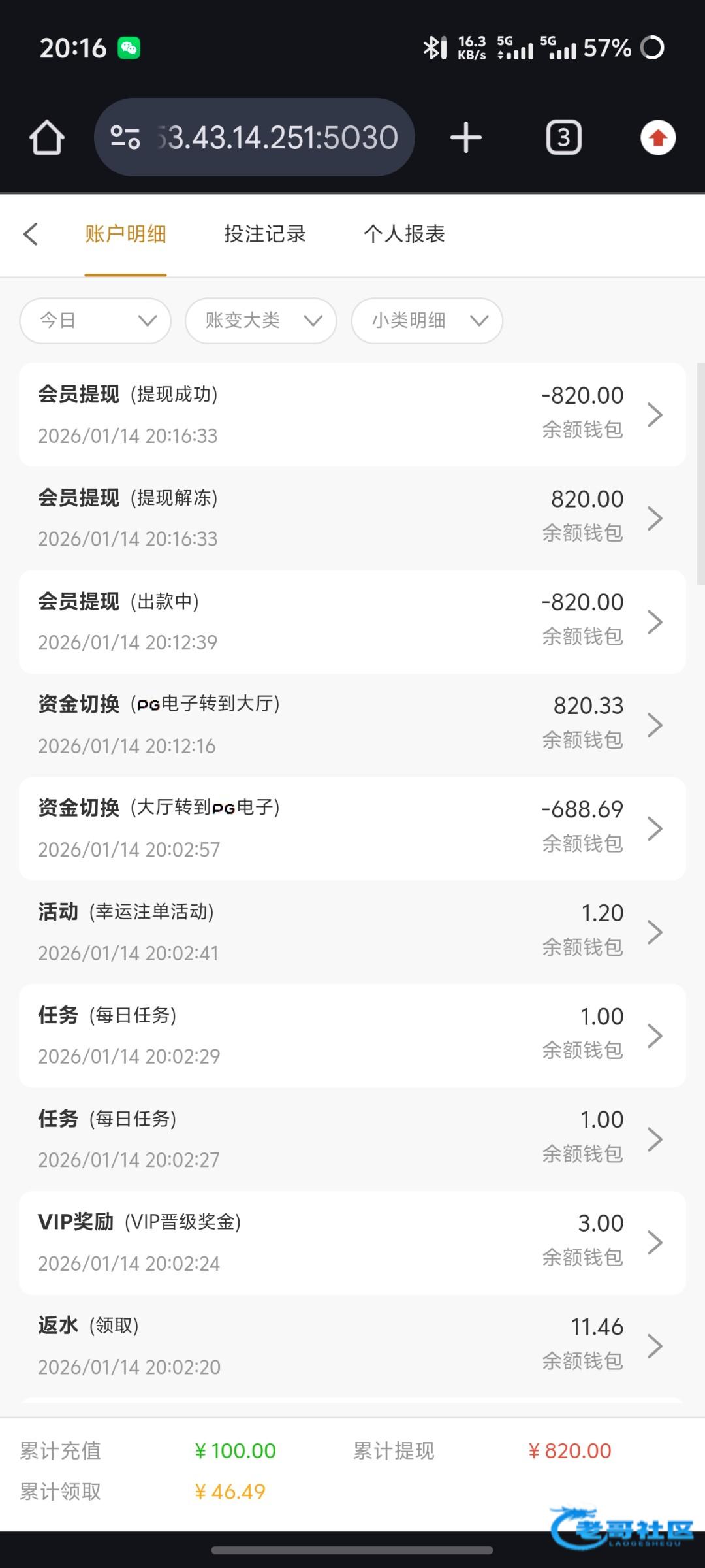 前几天充了100送100,出了6000