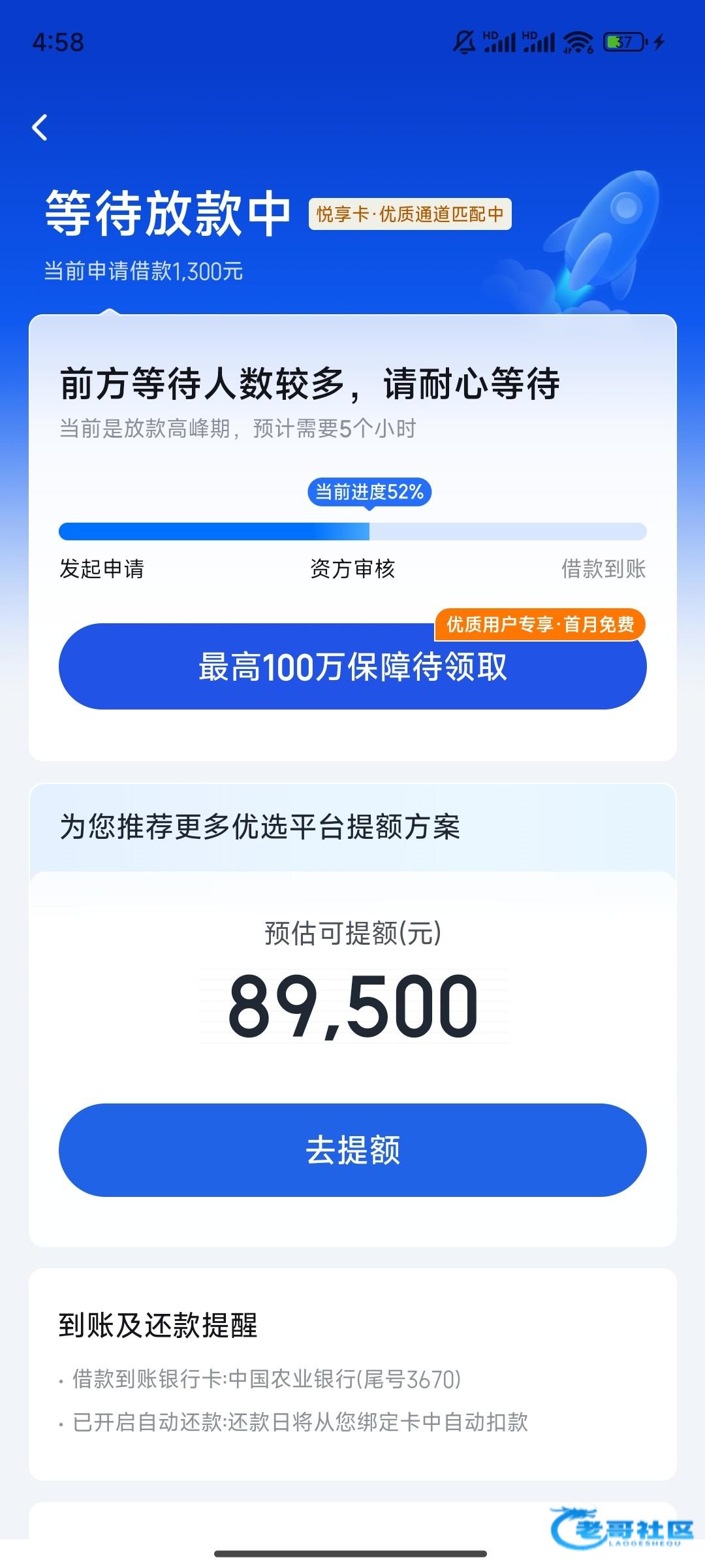 昨天晚上10点申请,到今天早上6:30到账,只要显示早上10点以前会放款,大部分的就稳了,等了一个晚上5点多,实在扛不住了睡着了,,,被7点的闹钟吵醒了,一看有了到账短信,,,还有什么鸡巴第三方的保险扣款,申请的时候根本没有这个保险,我成功下款了,老哥们,我看记录了,下款成功半小时以内给我自动扣一个什么保险费用80多块钱,去咨询你我贷客服,客服会给你联系方式,打电话强硬一点客服会给你甩链接自助退款,全额退款的,299的会员费用也是可以找客服取消订单的,强硬一点,全额取消,客服是先给我说退一半,坚持全额就好了