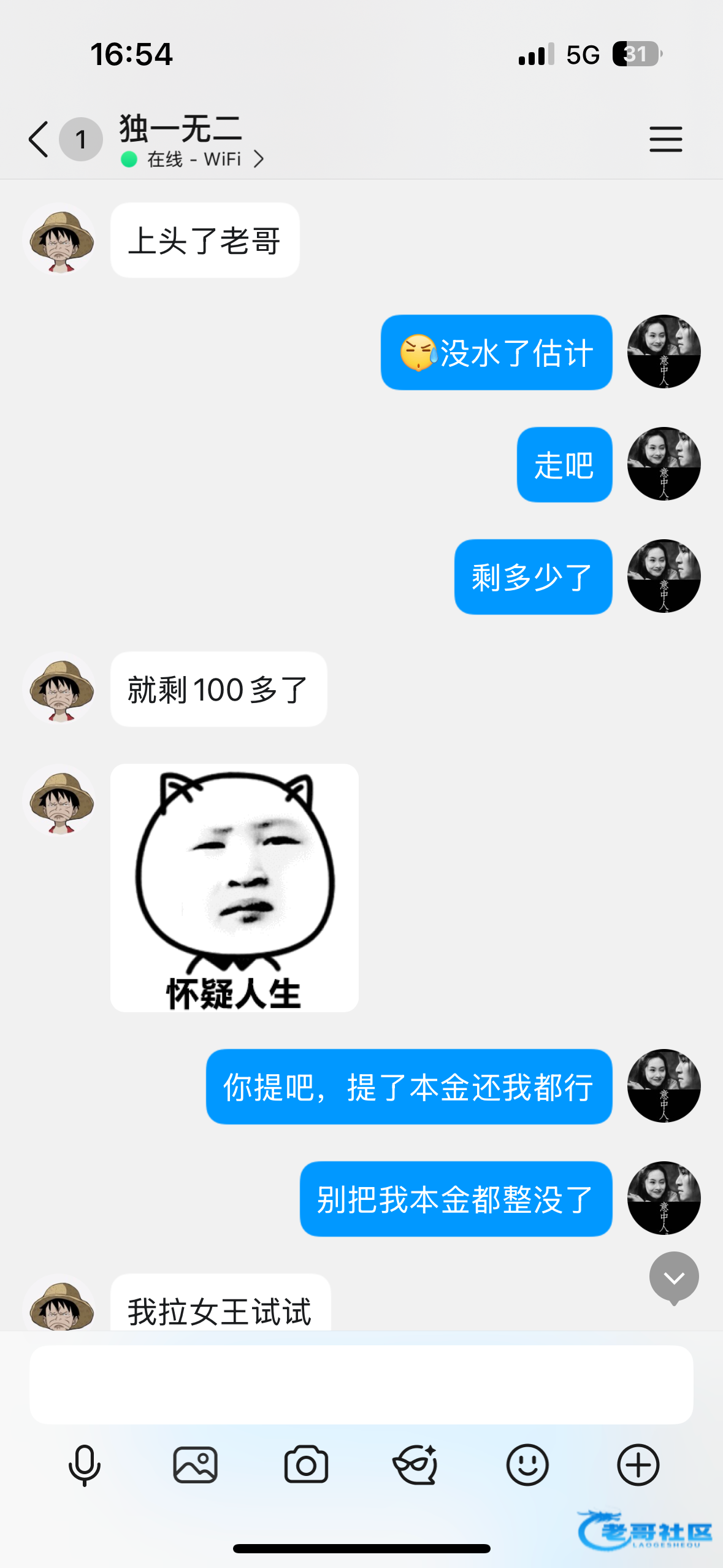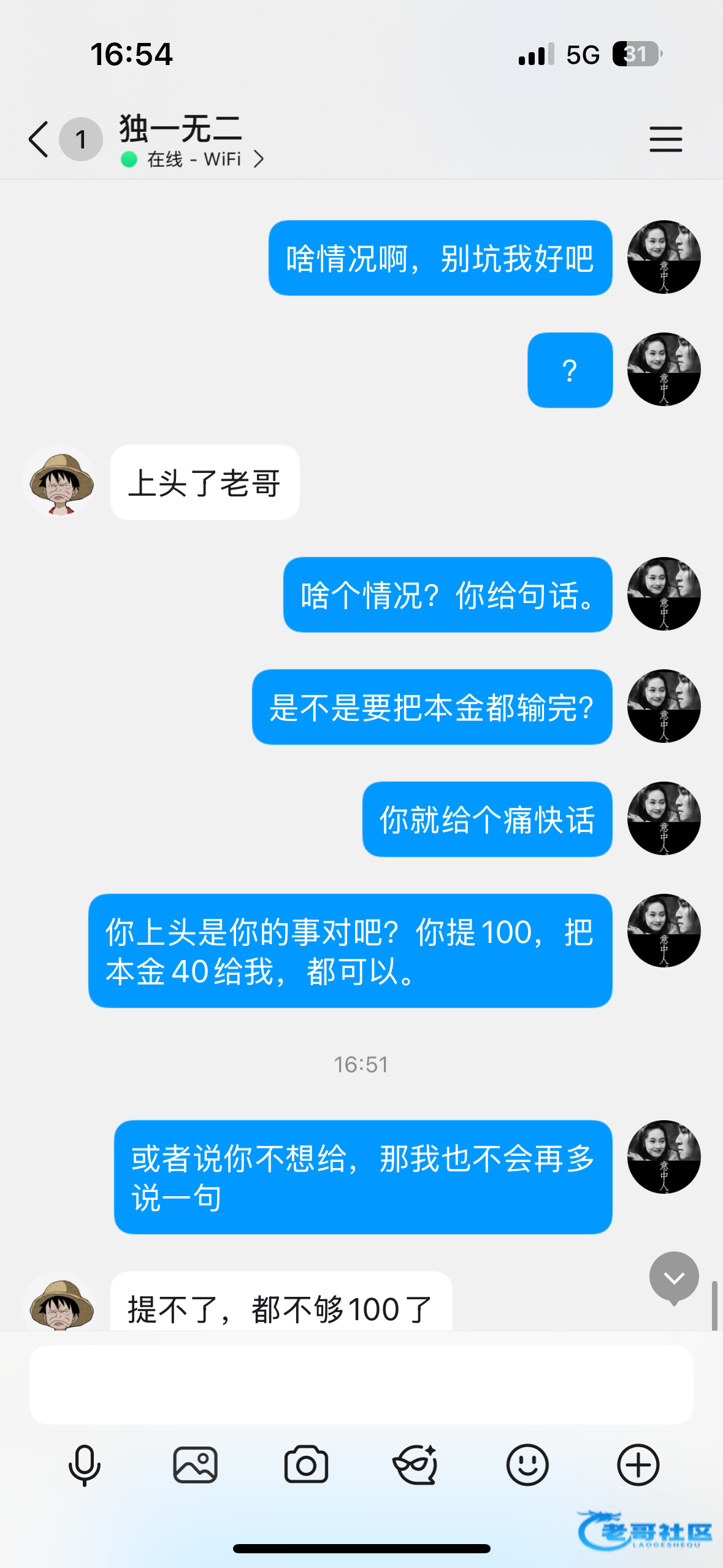 发了个贴松20提款要冲38,结果支援了他40,让他提不提,他说上头了,输完了,本金都不愿意提。其他不多说了,怪自己。不怪谁。让人心寒的就是这群人