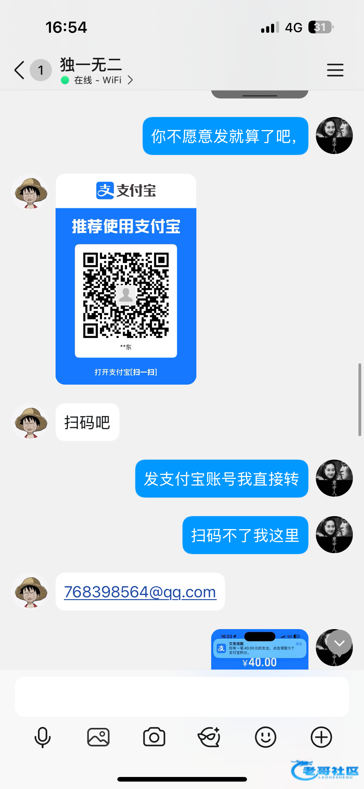 别信论坛的挂壁仔,看样子是吞你40不想给了,全凭一张嘴