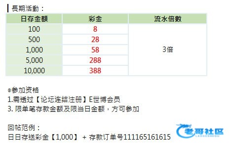1.日存定义:首存后再存之单笔最高金额即可参加活动,每天每人限一次 ; 存款计算区间 当天中午 12:00至隔天中午 12:00