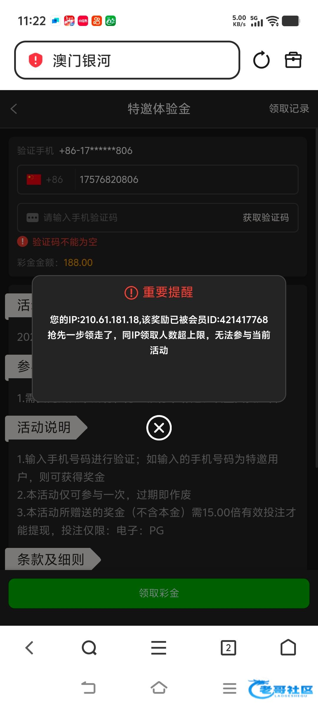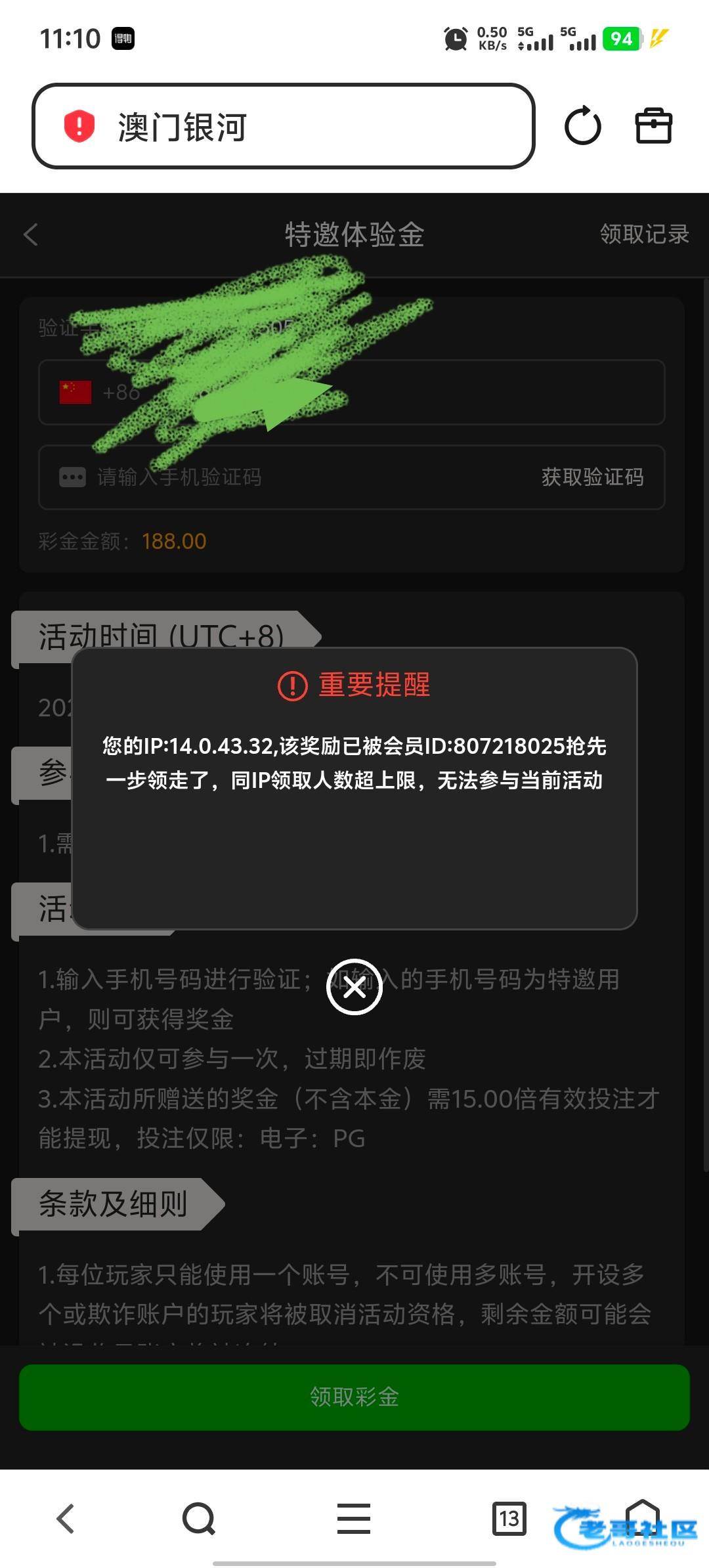 他妈的,刚收到短信,去找客服说不在特邀名单,又注册很久没办法去活动验证短信