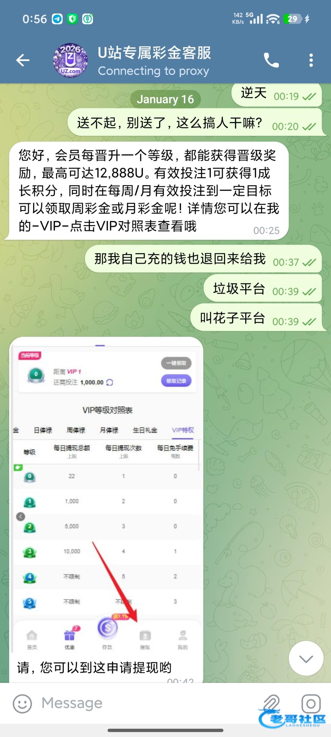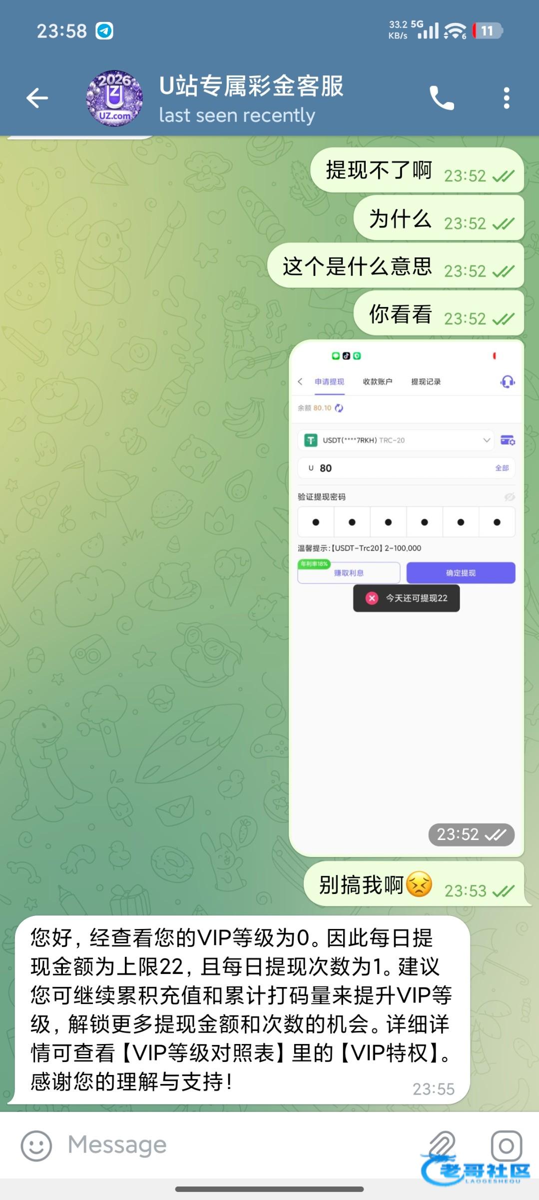赶紧删帖吧,没见过这么垃圾的u台,还会员等级限制提现额度