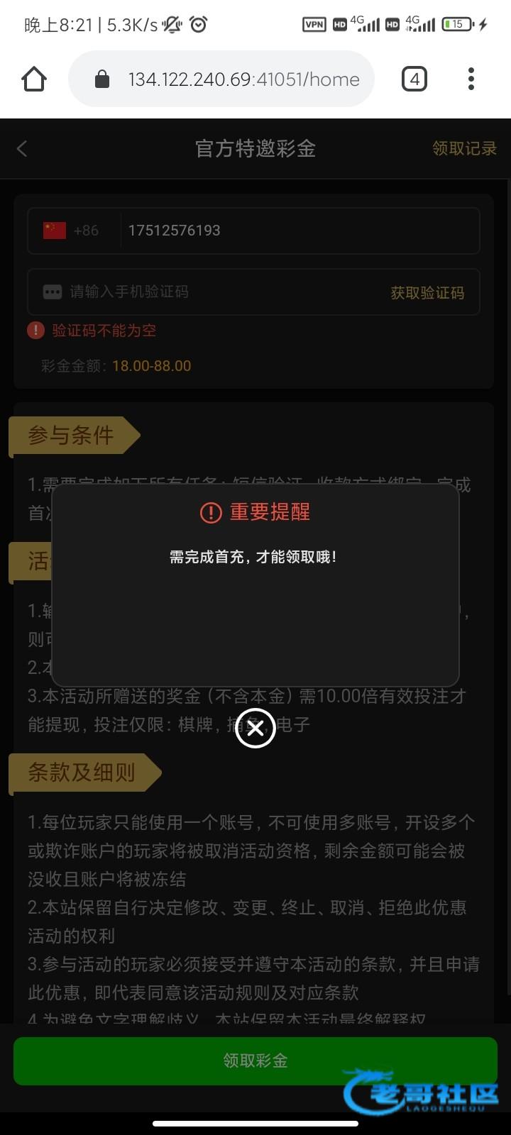 上次领了特邀彩金 打了电子出款200 罚捕鱼流水 10倍