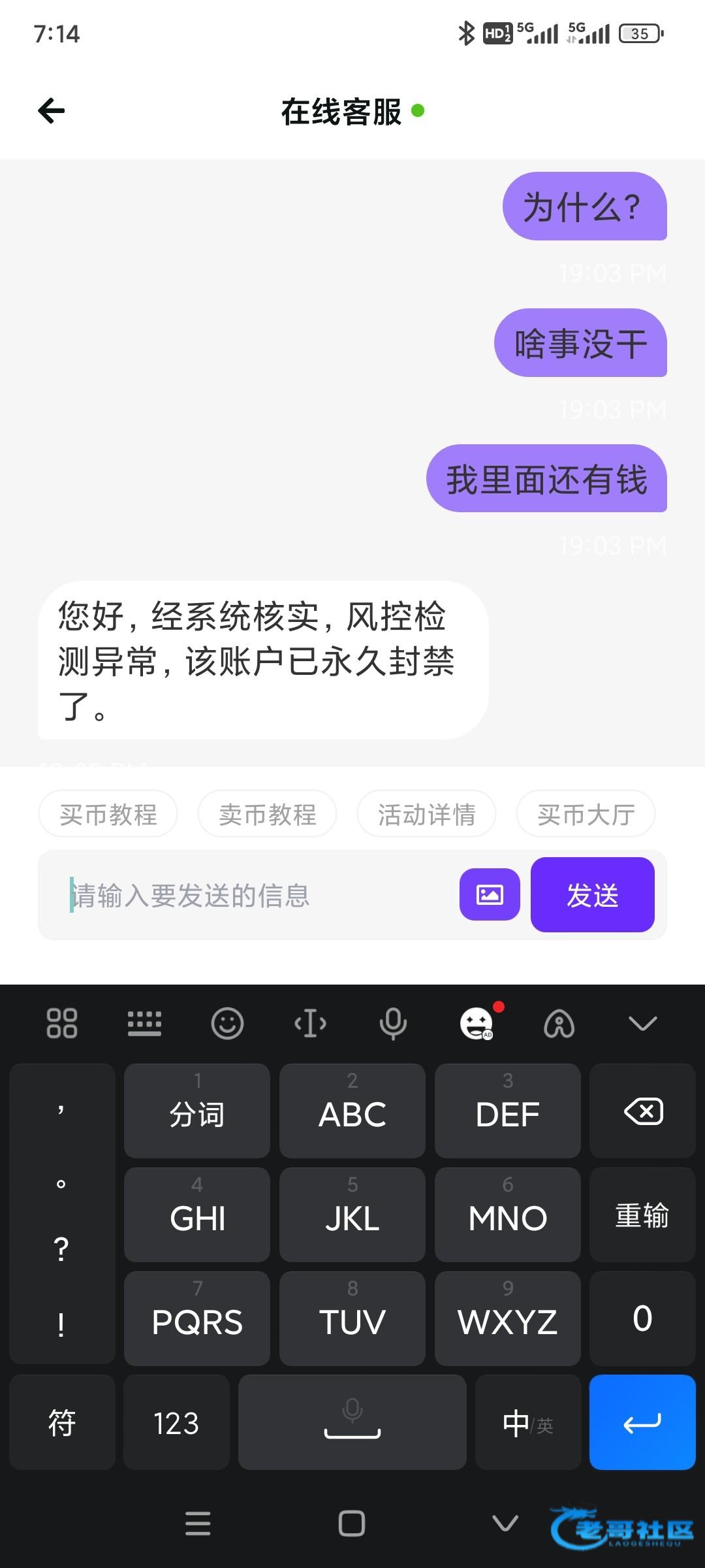 交易没超10次,说交易封控,永久封号除了这句话,没有其他的了,还好钱不多,送给红豆钱包管理人员,过年棺材钱