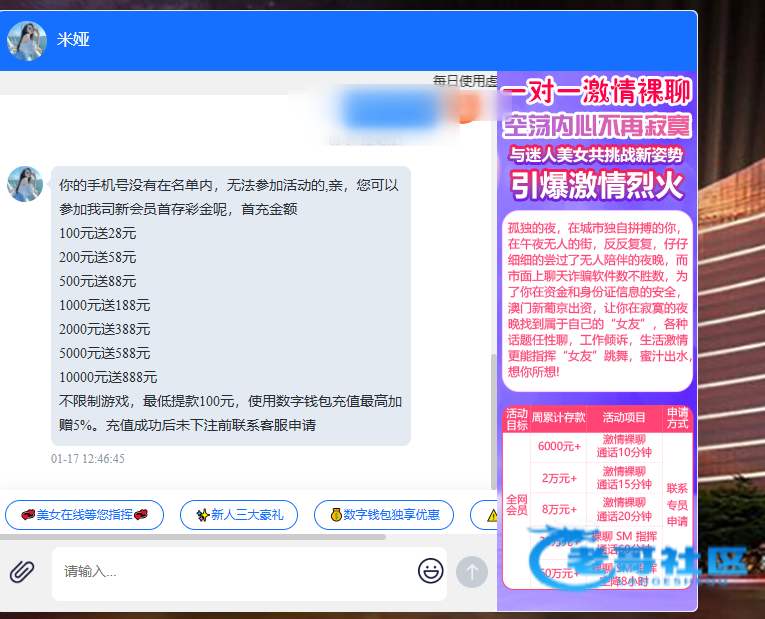 注册联系客服送 我没有接到电话直接去找的客服说特邀 然后就送了38 自己去碰吧 特邀彩金38 5倍水提款 只能提200 游戏基本假游戏 我没有打出来链接y3351.vip