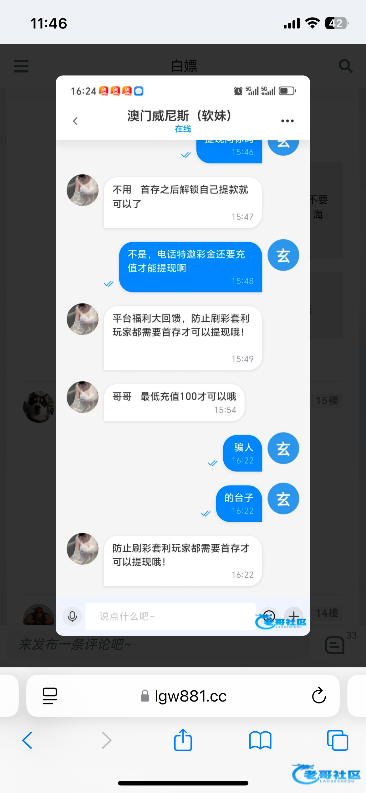 看论坛还有被黑的,自己充值玩的赢了各种理由,要充值一百才能开启提现通道,首存过了,补也不行了要在充值190打一倍流水,第一次碰见充值玩的赢了要开启提现通道的,一说把消息全清了