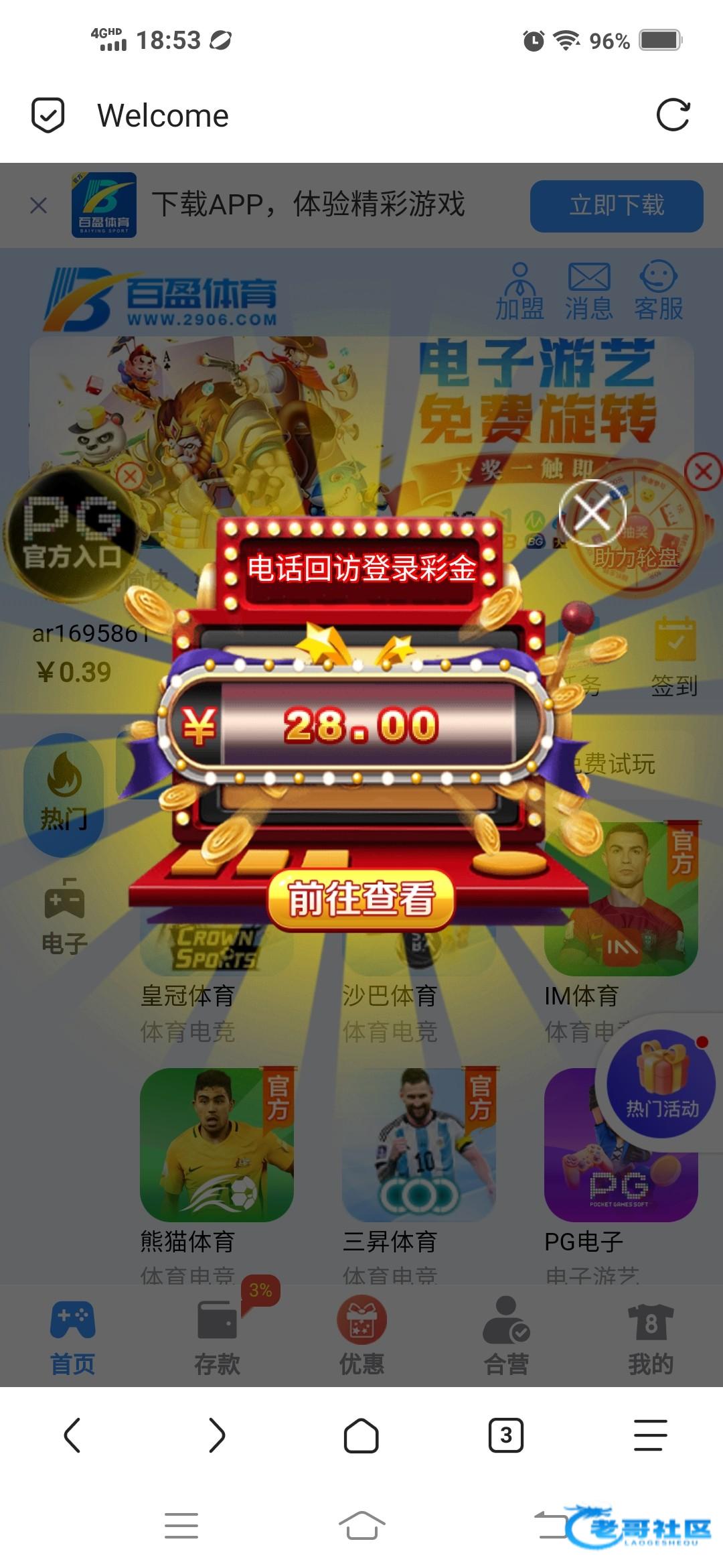 冲过一百,刚登陆自动跳出来,送了28,有号登录看看 链接2906.com